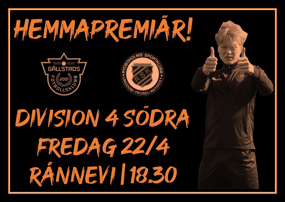 Inför: Gällstads FK - Rydboholms SK Vädret har varit med oss under påsken samt veckan så årets hemmapremiär kommer kunna spelas på Rånnevi, vilket glädjer tränare Tommy Bohman: - Efter en lång och kall försäsong inne på Lassalyckan, är det skönt att kunna komma till vår hemmaplan där vi har allt material och sådant så man slipper fundera över det till varje träning. Men framförallt är det skönt att seriespelet äntligen är igång. Premiären nere i Kinna gav noll poäng tyvärr, men vi visade att kämpaglöden fanns där då vi var nära att hämta upp ett 3-0-underläge i slutet på matchen så vi kunde ändå åka från Kinna med huvudet högt trots förlusten. Nu blickar vi istället fram emot hemmapremiären mot Rydboholm. Hur har veckan efter premiären sett ut? - I veckan har vi haft en U-lagsmatch borta mot Tranemo där vi luftade hela truppen och vann med 5-0. Lite tveksam start men sen tog vi tag i matchen och kunde hyfsat enkelt vinna. Dagen därpå (i onsdags) hade vi säsongens första gräspass här uppe på Rånnevi och det känns härligt att vara här på vår hemmaplan. Det var bra fart och grabbarna kändes väldigt sugna på att visa upp sig inför hemmapubliken på fredag. Vi kanske inte ska vänta oss något skönspel för det dröjer nog någon vecka till innan mattan på Rånnevi kan bjuda på det. Men vi lovar att göra vårt bästa för att knipa våra första poäng! Och för övrigt känns det väldigt skoj att vi har en hel serie framför oss med både vår- och höstspel med publik! Laget mot Rydboholm: 1. Jonathan Kisch 4. Emil Ejderhall 6. Linus Håkansson 7. Simon Forsblad 9. Oskar Lid 10. Sebastian Forsblad 11. Elvin Cuni 15. Simon Broman 17. Rasmus Grönkvist 19. Elias Andersson 20. Mattias Sjöö 21. Ibrahim Nazari 22. Mattias Johansson 26. Albin Ek 27. Viktor Lid 28. Lias Gustafsson 29. Johan Ekman 30. Emil Svensson